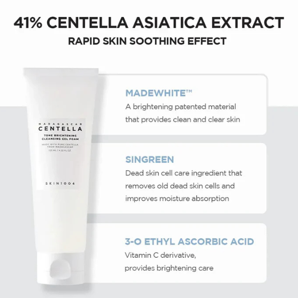 Ανανεώστε την επιδερμίδα σας με ένα ήπιο αλλά αποτελεσματικό καθαριστικό προσώπου SKIN1004 Madagascar Centella Tone Brightening Cleansing Gel Foam που καθαρίζει σε βάθος, χωρίς να διαταράσσει τη φυσική της ισορροπία.